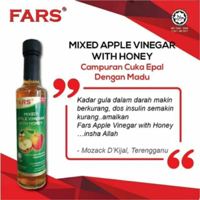 Kongsi ini bagi anda yang tidak kuat dengan rasa dan bau cuka epal, anda boleh campurkan dengan madu supaya ia lebih manis. Sebagai peringatan, sekiranya anda mengambil sebarang ubat, pastikan dapatkan nasihat doktor. Apabila anda mempunyai batuk, anda tidak perlu mencapai penahan batuk yang berlebihan. Cuka epal berwarna emas pucat. Cuka epal ini dapat membantu mempercepatkan metabolisma badan untuk menyingkir lemak2 terkumpul pada badan anda. Hanya menggunakan cuka epal yang di campur bersama minyak almod dan madu. Cuka epal ialah salah satu cara kuruskan badan yang baru terkenal yang membantu menurunkan dan mengawal berat badan dengan lebih mudah, selamat dan insyaallah berkesan. Cuka epal kami berbeza dengan jenama lain yang terdapat di pasaran kerana adanya tambahan madu semula jadi, yang memberikan rasa yang lazat dan menarik. Satu petua mencadangkan anda mencampurkan 2 sudu teh cuka epal dan satu sudu teh madu ke dalam satu gelas air suam. Lumurkan ke kulit kepala hingga ke hujung rambut selama setengah jam sebelumdi bilas dengan air bersih. Senarai khasiat cuka epal dan madu adalah seperti dibawah insyaallah manfaat cuka epal: Memecahkan molekul lemak dan membantu proses penurunan berat badan. Cuka epal (apple cider vinegar) mempunyai sejarah yang panjang sebagai ubat rumah yang digunakan untuk merawat banyak penyakit dari sakit tekak hingga urat varikos.
