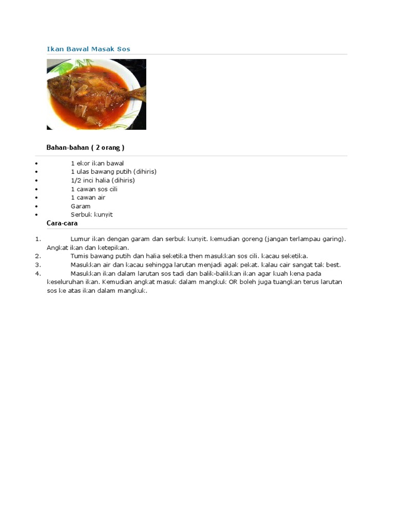 Resep bacem ikan bawal, lengkapi istimewanya jamuan hari ini. Ikan bawal hitam masak merah ( black pomfret red sauce. Ikan bawal emas stim limau ala thai. Barulah masukkan bawang besar,nenas,cili api dan serai dan kacau dalam beberapa minit supaya bawang mulai layu dan terus tutup api. Simpan ke bagian favorit tersimpan di bagian favorit.