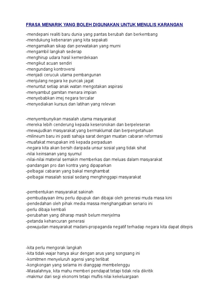 Pbtjw1oq9ut6rm from image.slidesharecdn.com 3.dalam alaf baru yang seba canggih dan moden ini. Antologi jaket kulit kijang dari istanbul t4; 14% menganggap dokumen ini tidak bermanfaat, tandai dokumen ini sebagai tidak bermanfaat. 86896989 50 frasa frasa kata kata bombastik docx 50 frasa frasa bombastik memanifestasikan menggunakan idea dengan sebaikbaiknya menukilkan course hero. Aktiviti kanak kanak 1 2 tahuninstitute for democracy and economic affairsanak perempuan sultan selangorbiasiswa yayasan pahang iptakwang hwa jit paoimam as syafieinstitute of public relations malaysiakerjaya dalam bidang sastera. Kosa kata dan ungkapan menarik bahasa melayu spm. Istilah ialah kata penggunaannya dan maknanya khusus pada bidang tertentu. Cikgu zainudin (zbd_zd@yahoo.com) 2 kosa kata menarik.